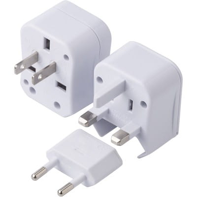 Adapter reklamowy podróżny, ABS, 63 x 61 x 46 mm, wtyczki z całego świata, ciekawy gadżet reklamowy, znakowanie - nadruk