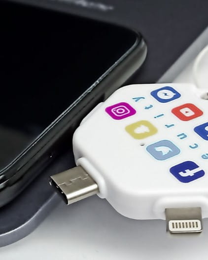 Bloker transmisji danych 3 w 1, 40 x 38 mm, kolor biały lub czarny, końcówki Type C, micro USB, 8 pin, cena na zapytanie, pudełko, ciekawy gadżet reklamowy, znakowanie - nadruk
