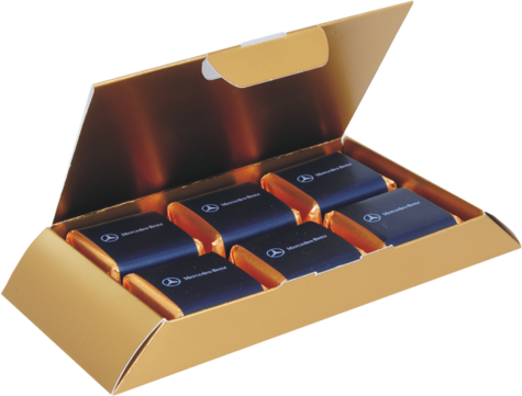 Bombonierka, 6 czekoladek, różne smaki, Cena dla 50 szt., nadruk na czekoladkach 2 kolory, 143 x 70 x 17 mm, zdobienie pudełka na zapytanie