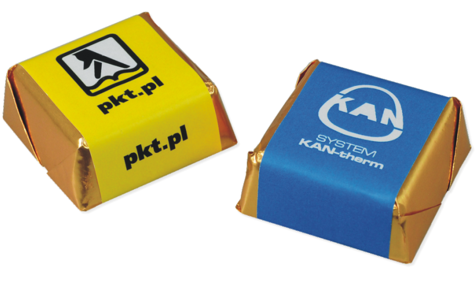 Bombonierka, 6 czekoladek, różne smaki, cena dla 25 szt., druk na czekoladkach 2 kolory, bok 110 x 48 mm, zdobienie pudełka na zapytanie