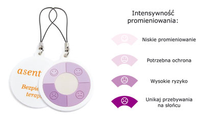 Brelok z PVC ze wskaźnikiem UV, na zamówienie, import, wskaźnik stopnia nasłonecznienia, cena na zapytanie