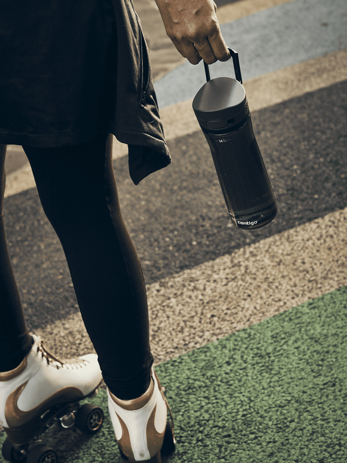 Butelka na wodę CONTIGO, 720 ml, Tritan, 100% szczelności, obsługa jedną ręką, zabezpieczenie przed samoczynnym otwarciem, składany uchwyt, łatwa do mycia (też w zmywarce), pasuje do większości uchwytów samochodowych i rowerowych, ciekawy gadżet reklamowy, znakowanie - nadruk