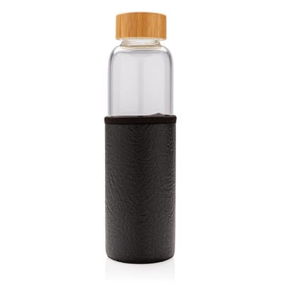 Butelka reklamowa szklana, bambus, pokrowiec z PP, 550 ml, ciekawy gadżet reklamowy, znakowanie - nadruk