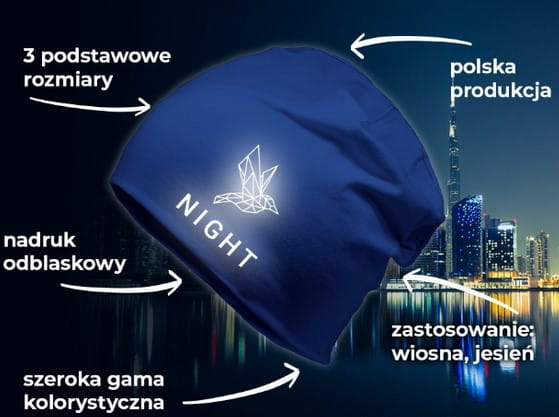 Czapka zimowa "smerfetka", bawełna z domieszką elastanu, 3 rozmiary, wiele dostępnych kolorów, cena przykładowa dla 100 szt. z nadrukiem odblaskowym, znakowanie - nadruk, haft, naszywka, ciekawy gadżet reklamowy