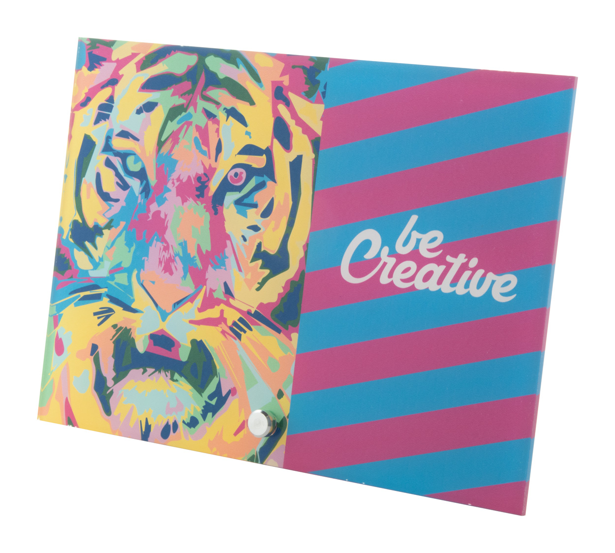 Display reklamowy z nadrukiem UV, 155 x 215 x 20 mm, akryl, stal nierdzewna, minimum 25 szt., znakowanie - dowolny nadruk UV, ciekawy gadżet reklamowy