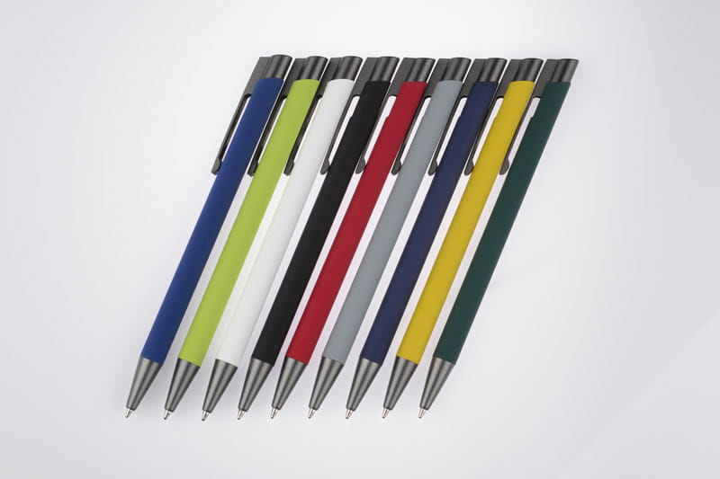 Długopis aluminiowy, gumowany Optima, śr. 9 x 140 mm, ciekawy gadżet reklamowy, znakowanie - laser, nadruk