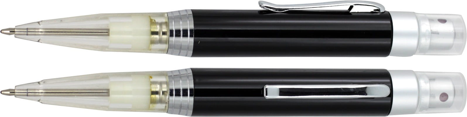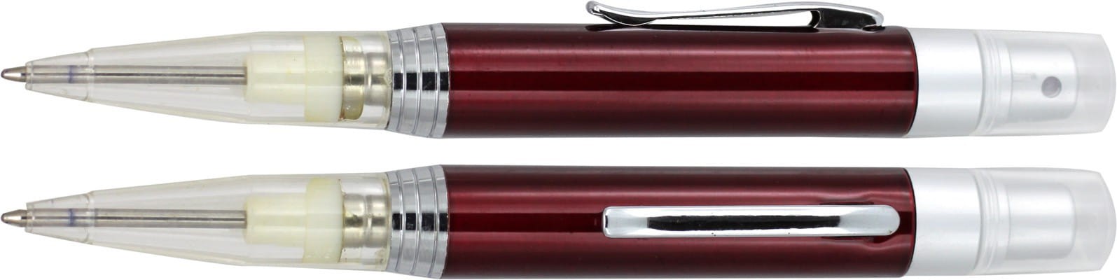 Długopis z rozpylaczem, ze środkiem dezynfekującym, śr. 14 x 135 mm, pojemność 3 ml, zawartość 70% spirytus, 30% woda destylowana, ciekawy gadżet reklamowy, znakowanie - nadruk