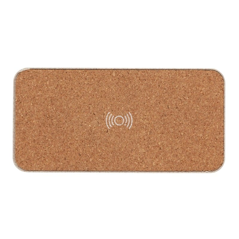 Głośnik. ładowarka indukcyjna, powerbank - eko, słoma pszeniczna, ABS, korek, 160 x 78 x 58 mm, ład. 5 W, powb. 1200 mAh, kabel USB typu C, ciekawy upominek reklamowy, znakowanie - nadruk, laser