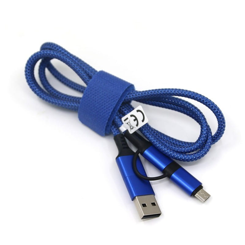 Kabel do ładowania i synchronizacji, ABS, nylon, 120 x 35 x 25 mm, końcówki USB, 2 x USB typ C, micro USB, rzep mocujący z miejscem na znakowanie, znakowanie - nadruk, ciekawy gadżet reklamowy