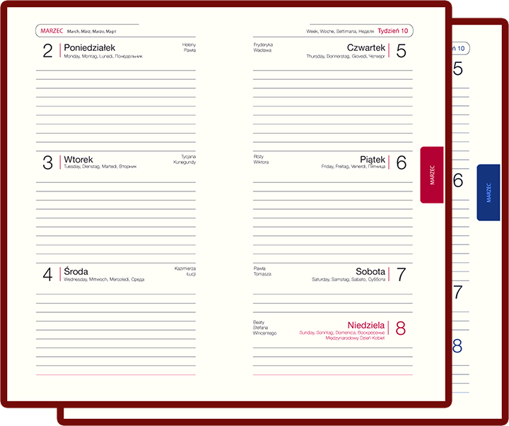 Kalendarz A6, tygodniowy skóra premium