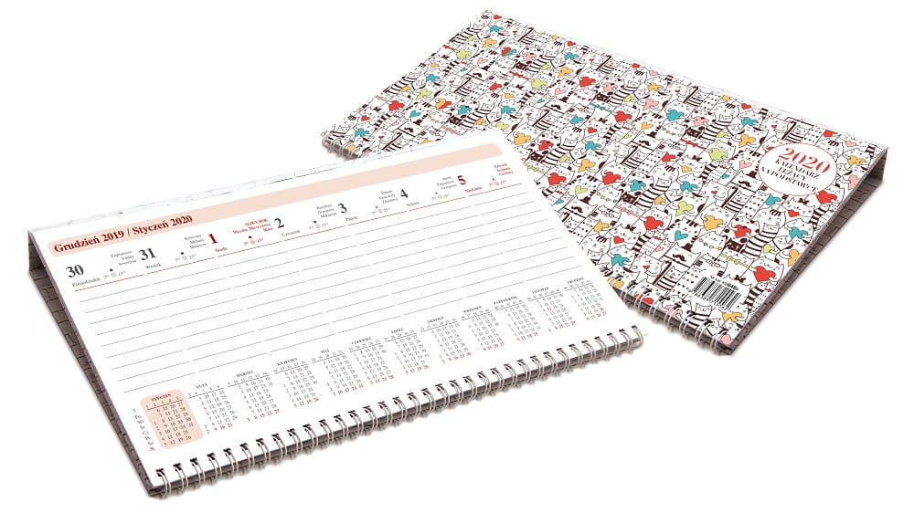 Kalendarz reklamowy biurkowy tygodniowy, leżący, na podstawce, 296 x 102 mm, znakowanie - indywidualna okładka, cena dla 100 szt. (min. 50 szt.). Ciekawy upominek reklamowy