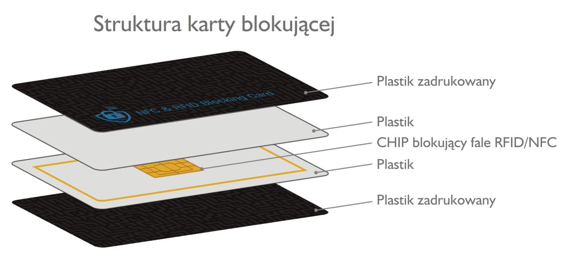 Karta blokująca systemy NFC i RFID, 85 x 54 mm, działa do 5 cm odległości w zakresie 13.56 MHz, idealna do portfela, ciekawy gadżet reklamowy, znakowanie - nadruk UV od 50 szt. - 15,90, etui papierowe - 1,52