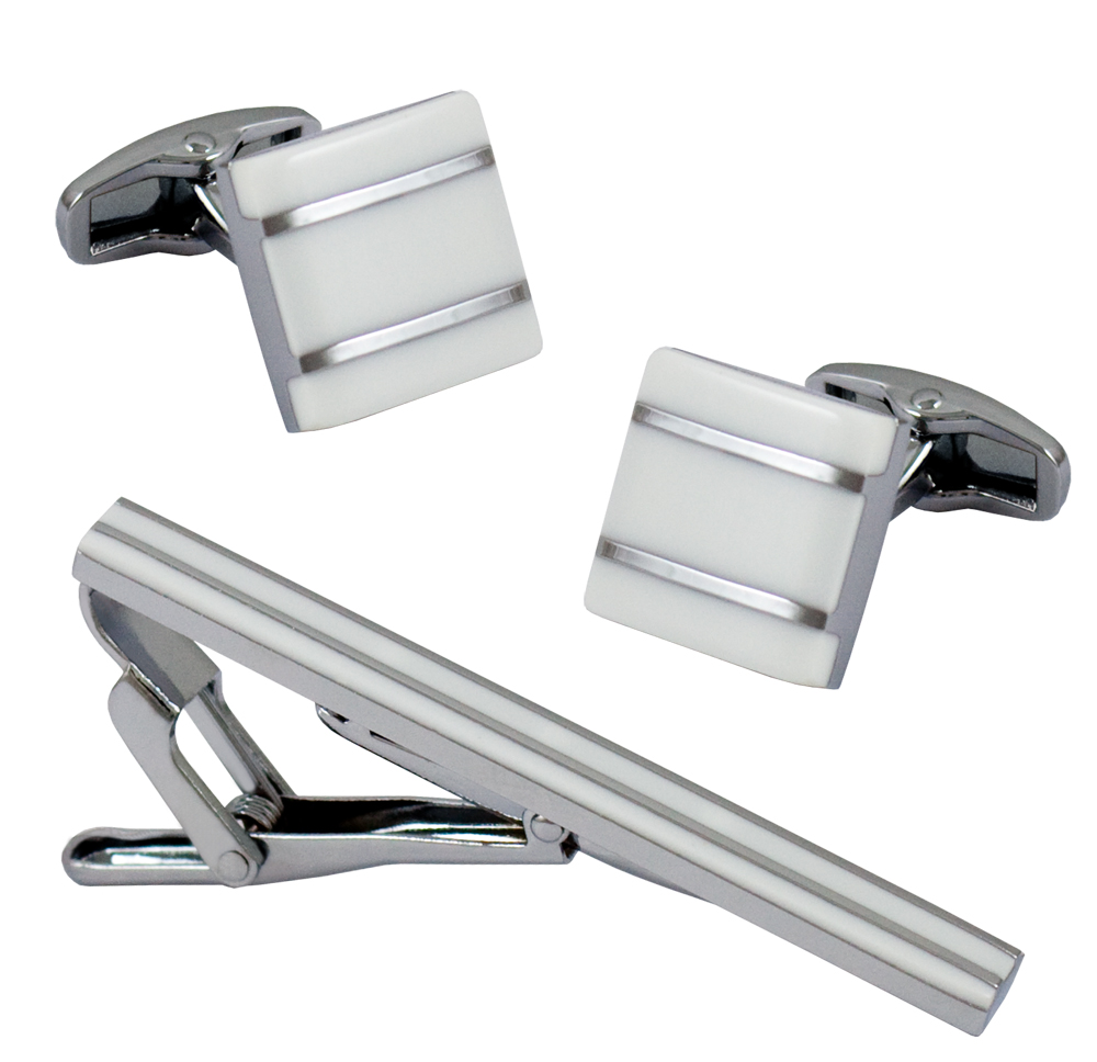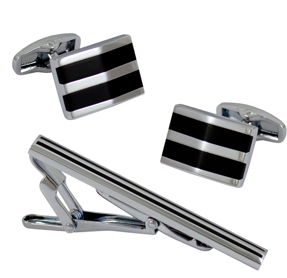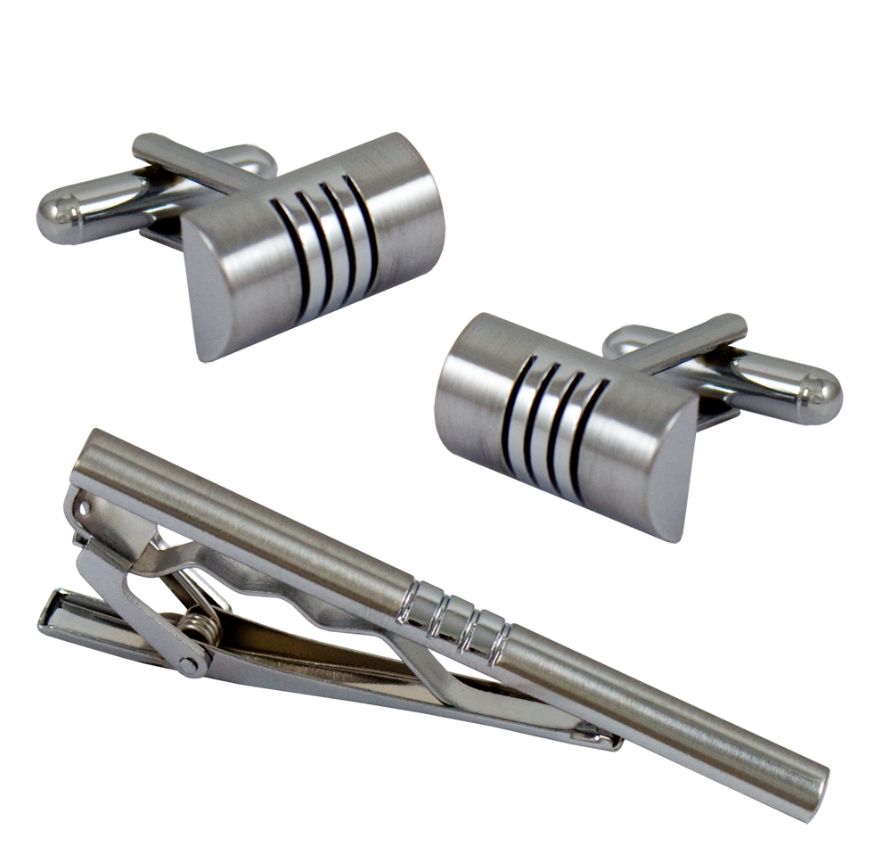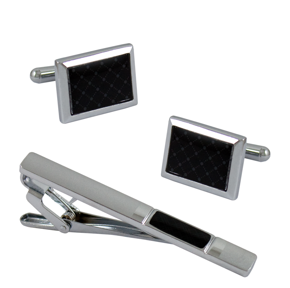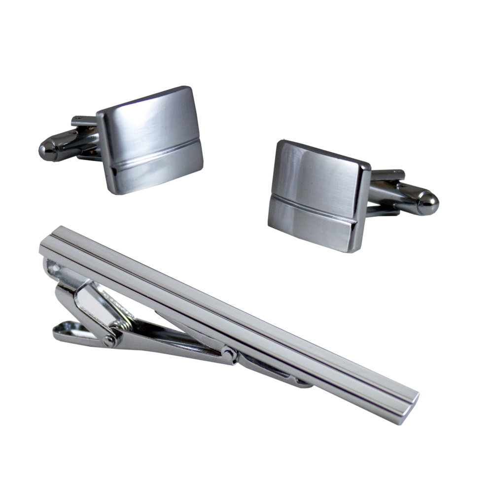 Komplet spinek - mankiety i krawat, stal, eleganckie pudełko