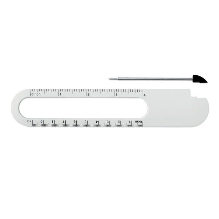 Linijka reklamowa z długopisem, 180 x 7 x 34 mm, dodatkowo szkło powiększające, ciekawy gadżet reklamowy, znakowanie - nadruk
