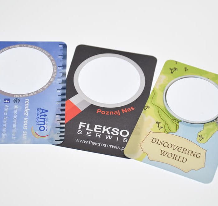 Lupa - karta reklamowa, 85 x 55 mm, cena dla min. 100 szt., znakowanie - dowolny druk UV, pakowana w woreczek, opcja etui papierowe z drukiem - 0,60, ciekawy gadżet reklamowy