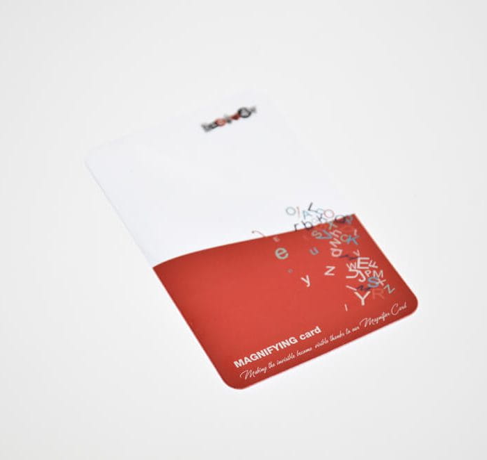 Lupa - karta reklamowa, 85 x 55 mm, cena dla min. 100 szt., znakowanie -  dowolny druk UV, pakowana w woreczek, opcja etui papierowe z drukiem - 0,60, ciekawy gadżet reklamowy