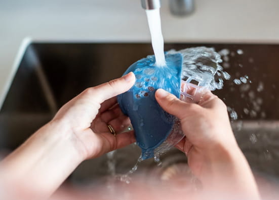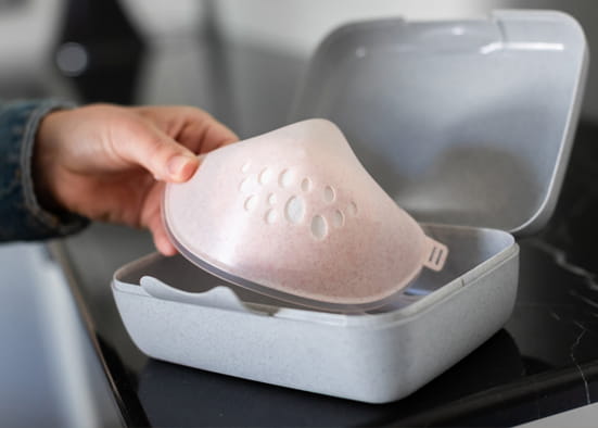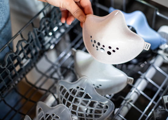 Maseczka z tworzywa KOZIOL z filtrem, elastyczne tworzywo w 100% do recyklingu, również do zmywarki, prawie niezniszczalna, filtrem może być standardowy płatek kosmetyczny, znakowanie - nadruk, laser