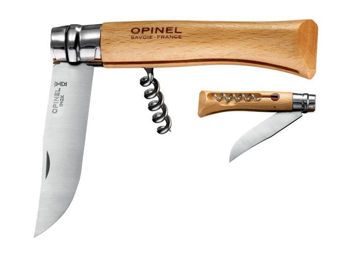 Nóż OPINEL z korkociągiem, ostrze 100 mm, stal nierdzewna Sandvik, drewno bukowe, blokada zamkniętego i otwartego ostrza, waga 77 g, solidny korkociąg, ciekawy gadżet reklamowy, znakowanie - laser