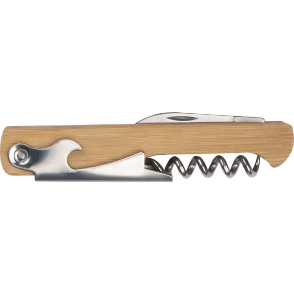 Nóż kelnerski reklamowy - eko, metal, bambus, 110 x 12 x 25 mm, ciekawy gadżet reklamowy, znakowanie - laser - nadruk