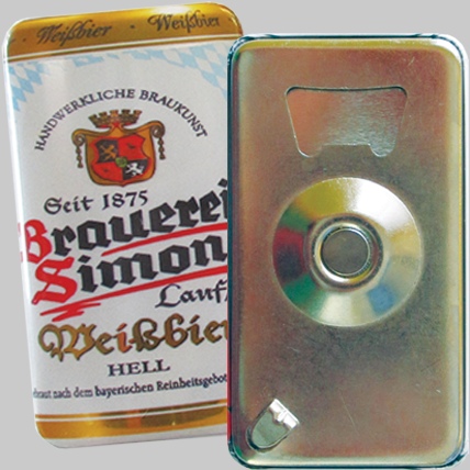 Otwieracz do butelek i puszek, metal, 90 x 50 mm, dowolny nadruk, cena na zapytanie