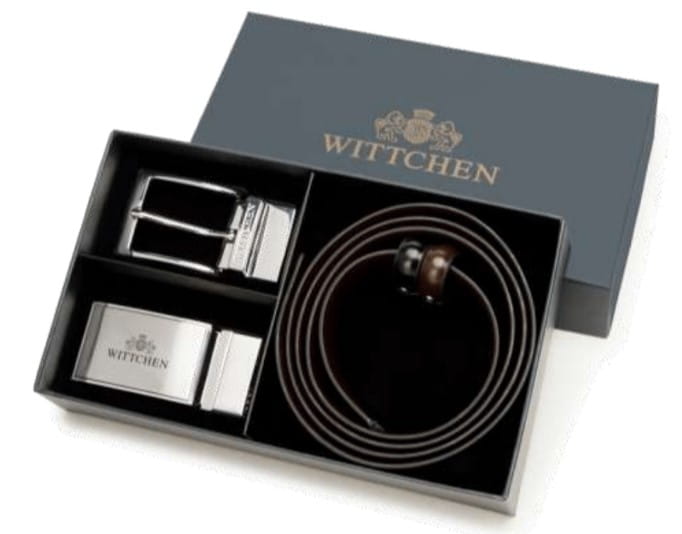 Pasek skórzany Wittchen z wymiennymi klamrami, szer. 33 mm, dwustronny, ciekawy upominek reklamowy, znakowanie - laser, tłoczenie