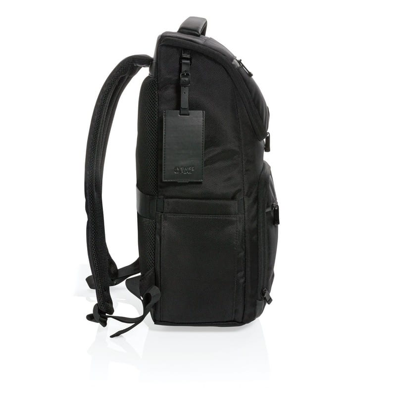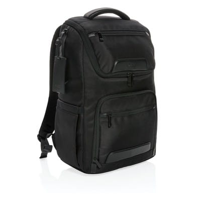 Plecak reklamowy na laptopa Swiss Peak, eko, RPET 1680D, 29 x 14 x 47 cm, na laptopa 15,6", ochrona RFID, zintegrowany port USB do ładowania, ciekawy upominek reklamowy, znakowanie - nadruk