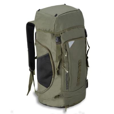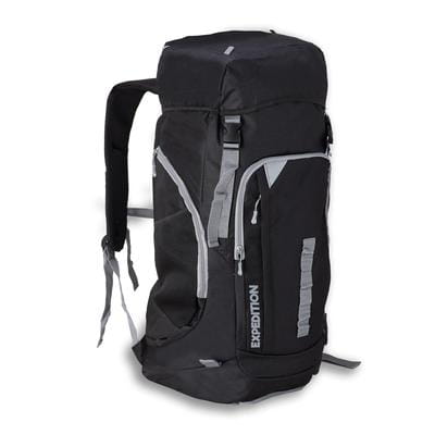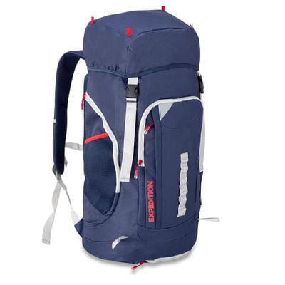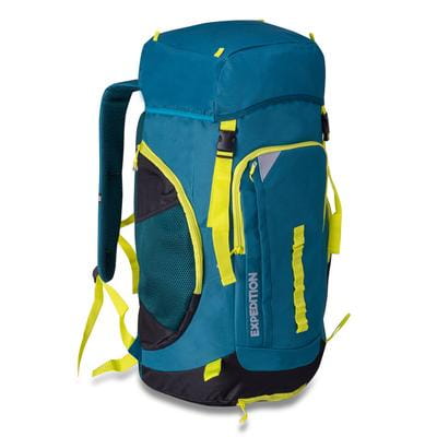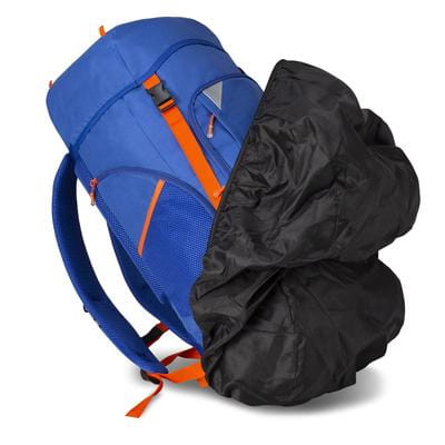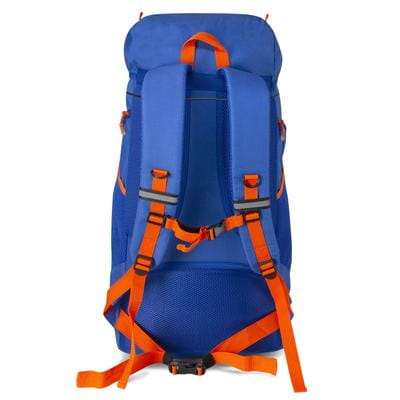 Plecak trekkingowy 45 l, poliester, usztywniane szelki, plecy i pas biodrowy, 5 kieszeni, elementy odblaskowe, kieszeń z wodoodpornym pokrowcem, ciekawy upominek reklamowy, znakowanie - nadruk, haft