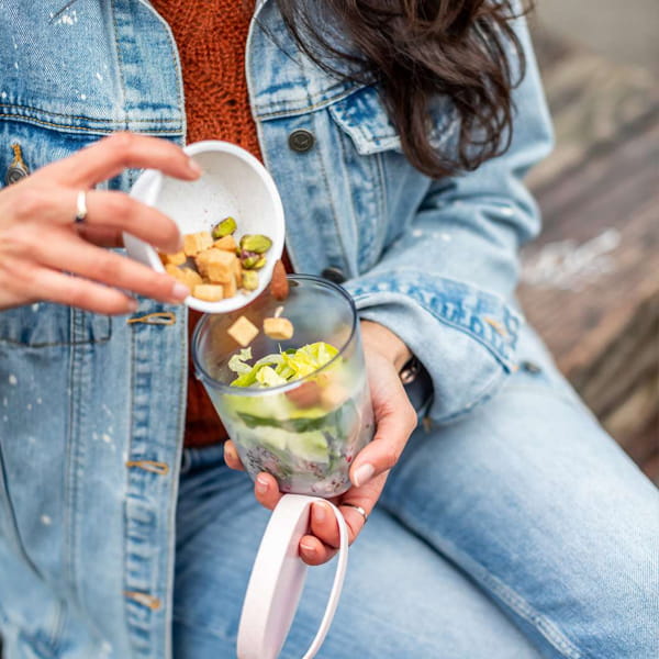 Pojemnik sałatkowy KOZIOL - eko, tworzywo ORGANIC w 100% do recyklingu, 2 części + pokrywka, 104 x 104 x 140 mm, ciekawy gadżet reklamowy, znakowanie - nadruk do 40 x 20 mm