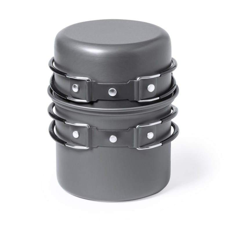 Pojemnik turystyczny na żywność, aluminium, stal nierdzewna, śr. 130 x 153 mm, pojemności 600 i 800 ml, sztućce składane, ciekawy upominek reklamowy, znakowanie - laser, nadruk