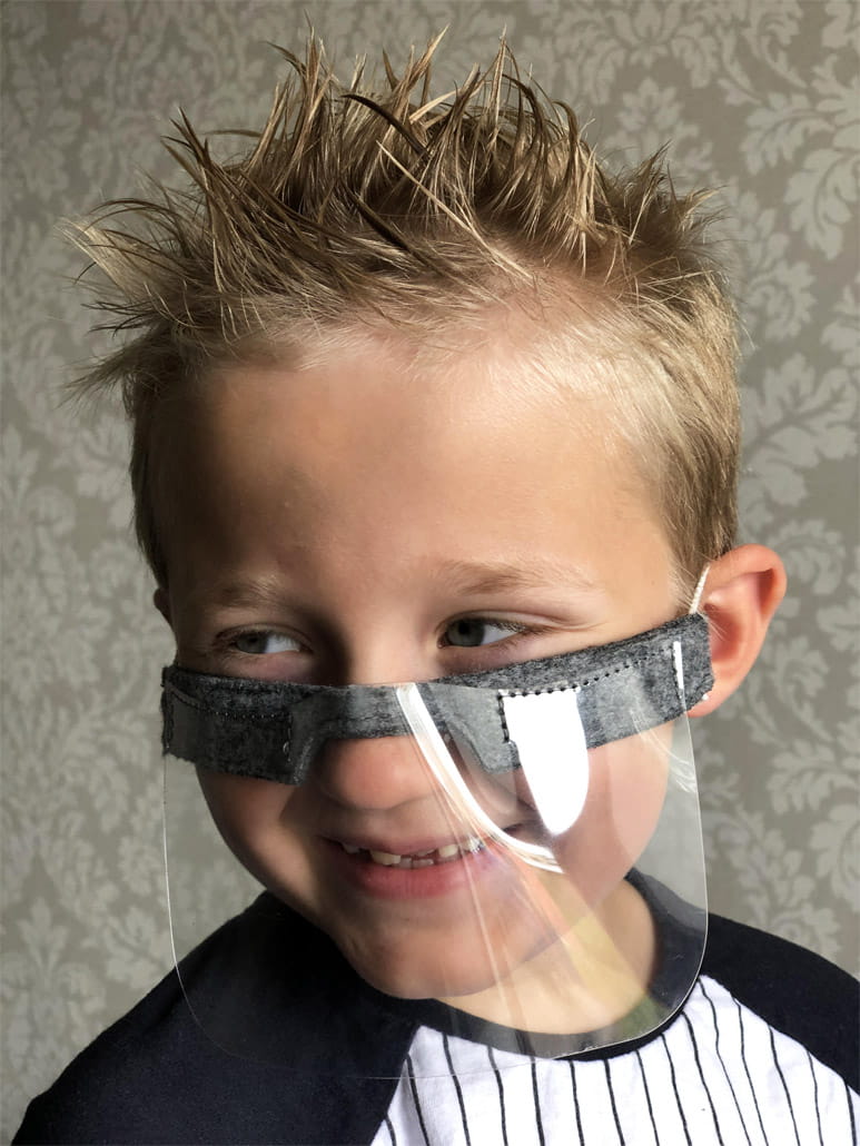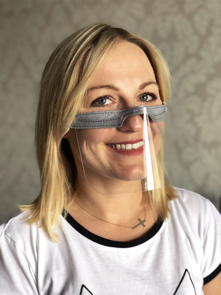 Przyłbica - maska, tworzywo PET, gumki na uszy, 20 x 10 cm, pakowanie jednostkowe, certyfikat CE, min. - 50 szt., zdobienie - hot-stamping. Opcja dziecięca - 9,50