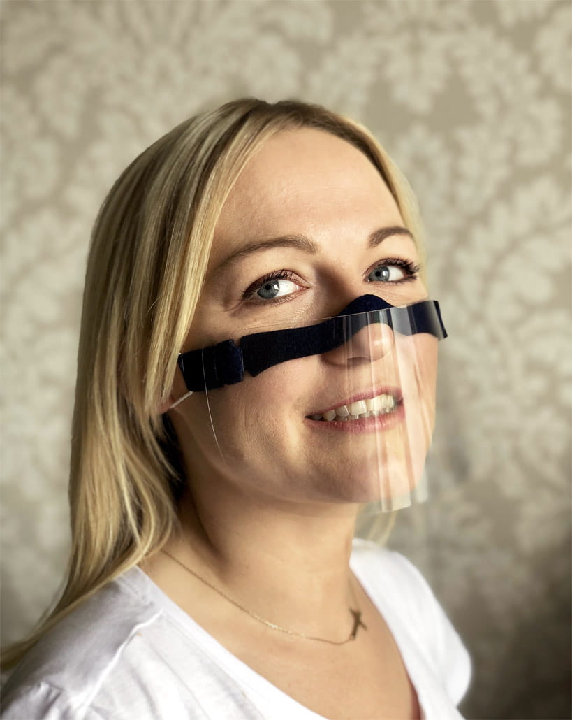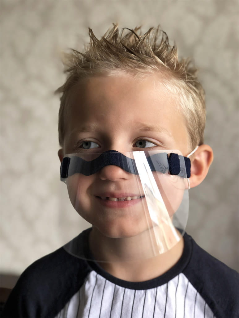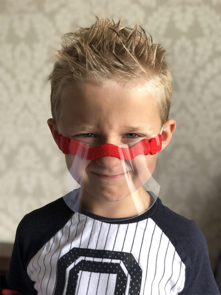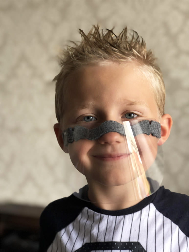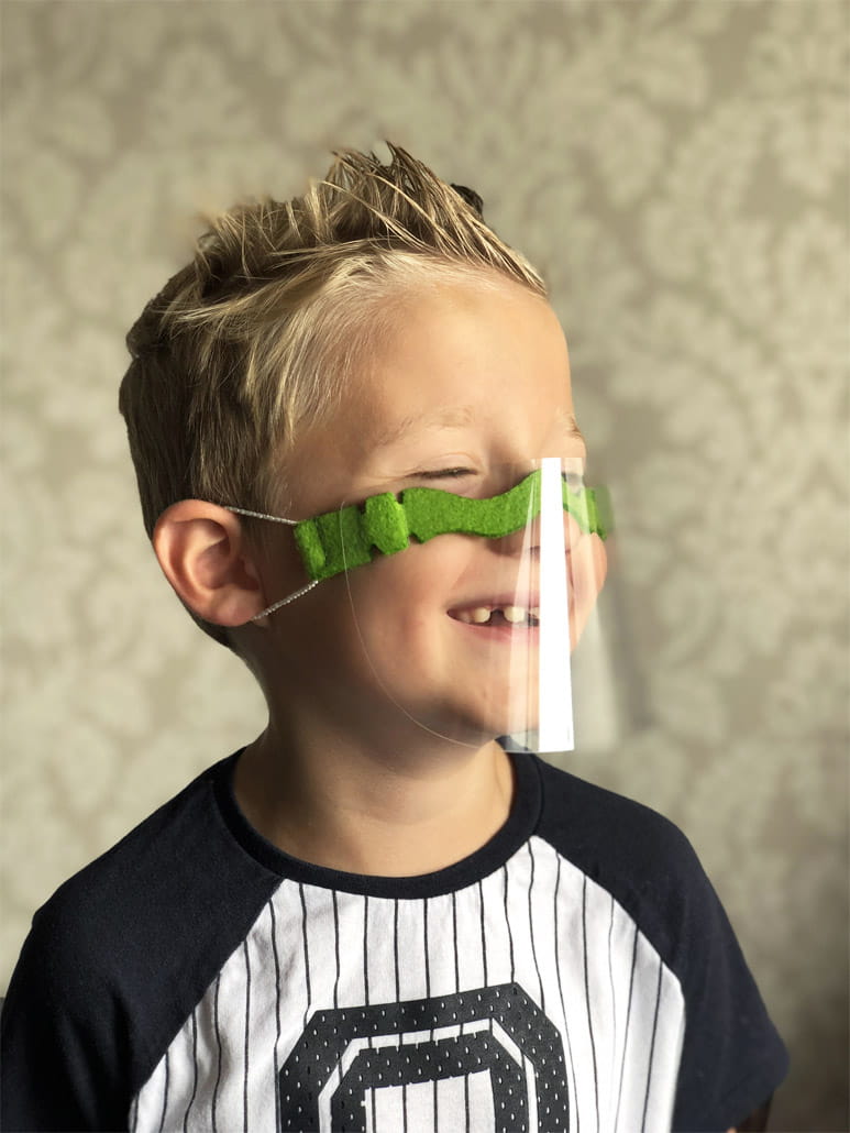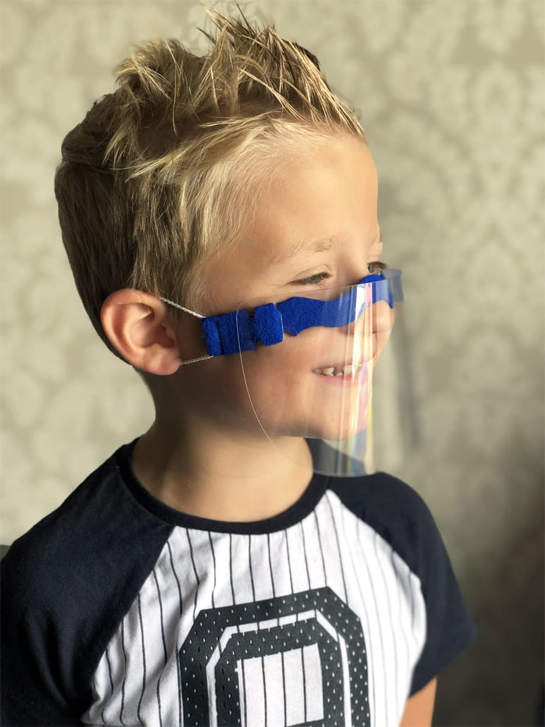 Przyłbica - maska, PET, filc, 18 x 10 cm, gumki na uszy, wielorazowe, certyfikat CE, pakowanie jednostkowe, od 50 szt., znakowanie - hot-stamping, ciekawy gadżet reklamowy i ochronny. Wersja dziecięca - 7,40