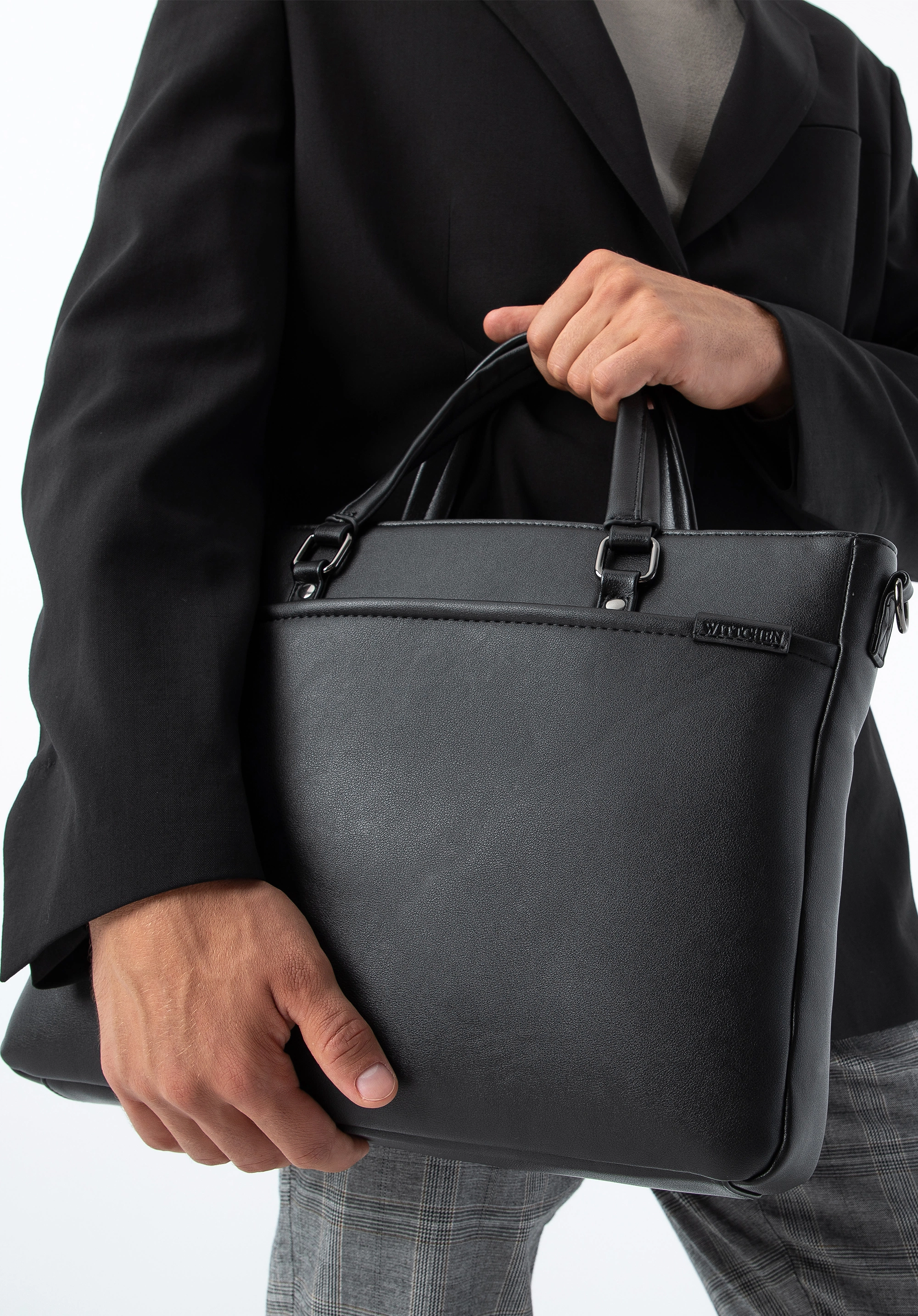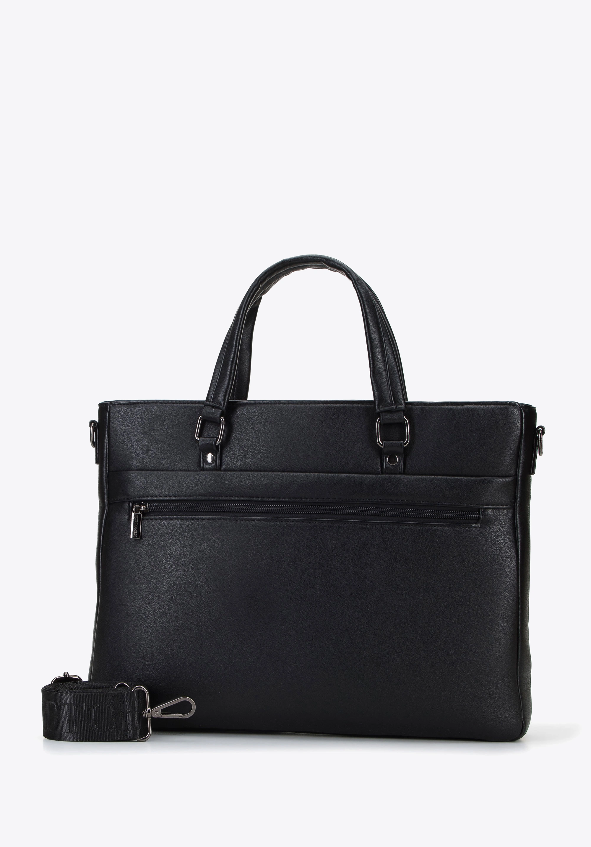 Torba na laptopa 13” z ekoskóry - promocja, 28 c 38 x 5 cm, przednia kieszeń na magnes, mieści format A4, 2 otwarte kieszenie, ciekawy upominek reklamowy, znakowanie - laser.
