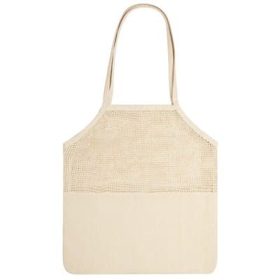 Torba reklamowa na owoce i warzywa - eko, bawełna 220 g, góra z siatki, 42 x 45 cm, ciekawy gadżet reklamowy, znakowanie - nadruk