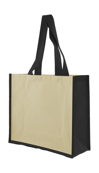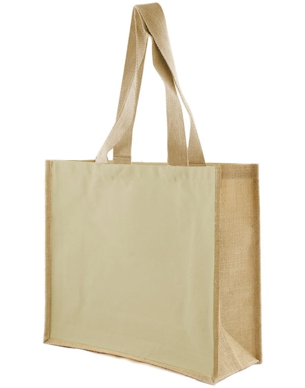 Torba reklamowa z juty, 39 x 35 x 15 cm, kieszeń z bawełny, laminowana, ciekawy gadżet reklamowy, znakowanie - nadruk, haft
