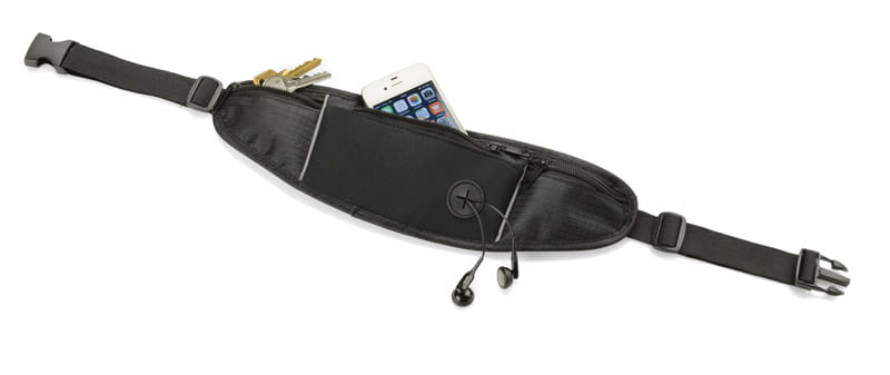 Torebka sportowa na biodra, 345 (z paskiem 1050) x 100 x 10, poliester 840D, guma, tworzywo, 3 kieszonki, 4 przegródki, ciekawy gadżet reklamowy, znakowanie - nadruk