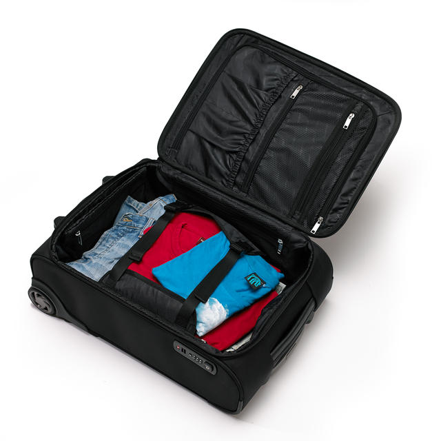 Walizka dwukołowa, poliester 1680D, tworzywo, metal, 63 x 43 x 27 cm, aluminiowy stelaż, mocne koła, zamek TSA. Opcja 75 cm w tej samej cenie
