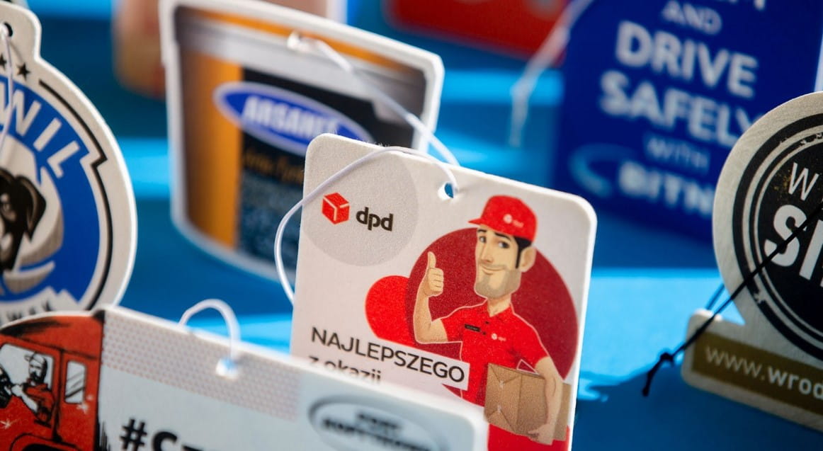 Zawieszka zapachowa z celulozy, grubość 2 mm, sporo kształtów do wyboru, własny wykrojnik - 360,00 netto, cena dla 1000 szt. (min. 100 szt.), obustronny pełno kolorowy nadruk, gumka lub zawieszka, 22 zapachy do wyboru, ciekawy gadżet reklamowy
