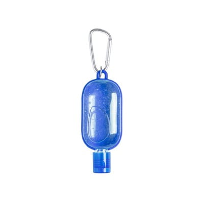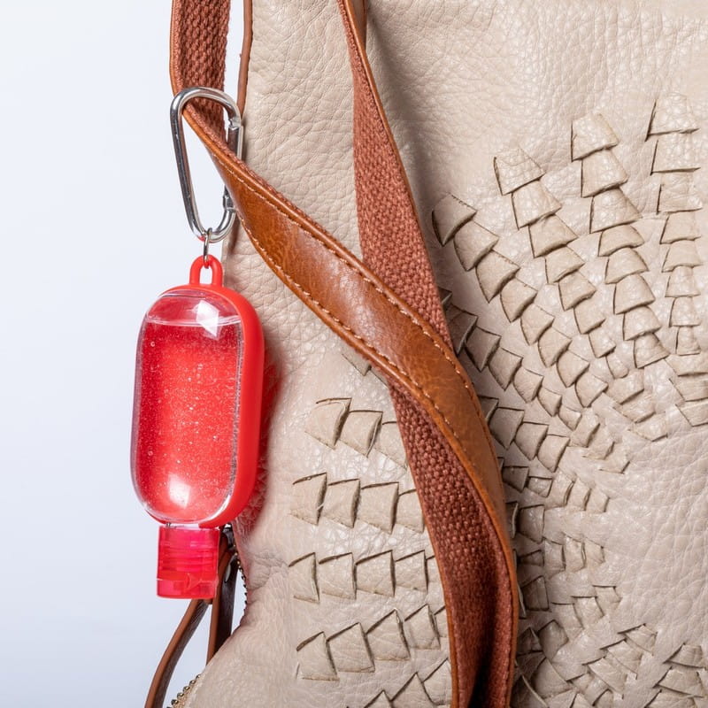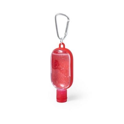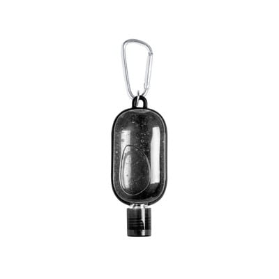 Żel antybakteryjny z karabińczykiem, 30 ml, 93 x 43 x 18 mm, 70% alkoholu, ciekawy gadżet reklamowy, znakowanie - nadruk, etykieta. Opcja bez karabińczyka - 4,85