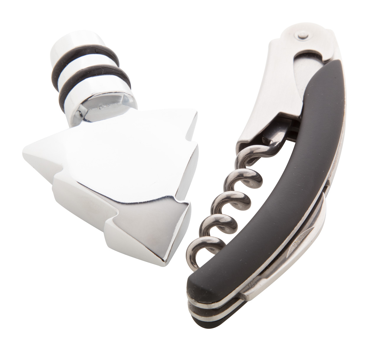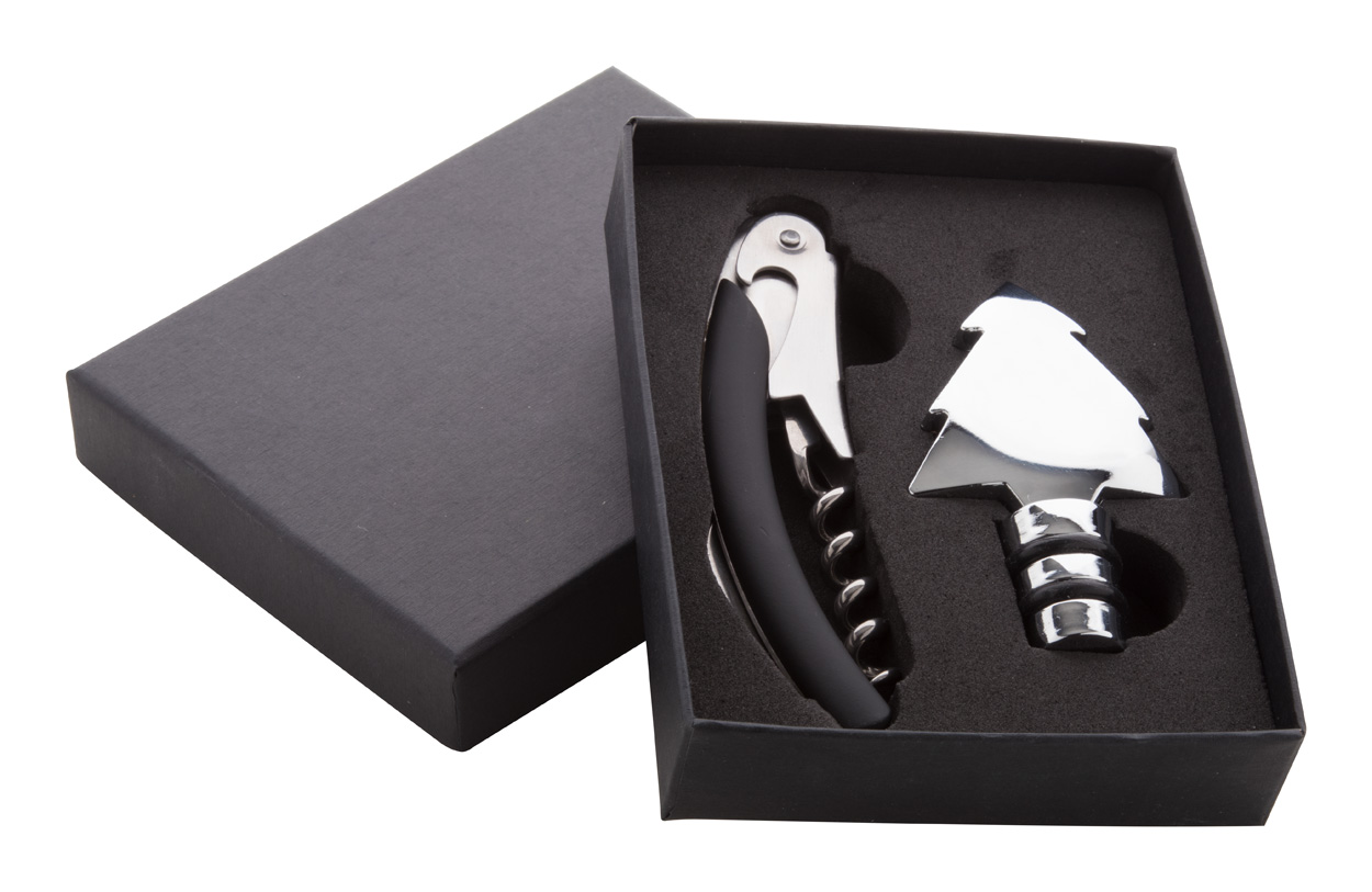Zestaw do wina - korek i korkociąg, 121 x 95 x 27 mm, metal, pudełko prezentowe, ciekawy upominek reklamowy, znakowani e- laser, nadruk