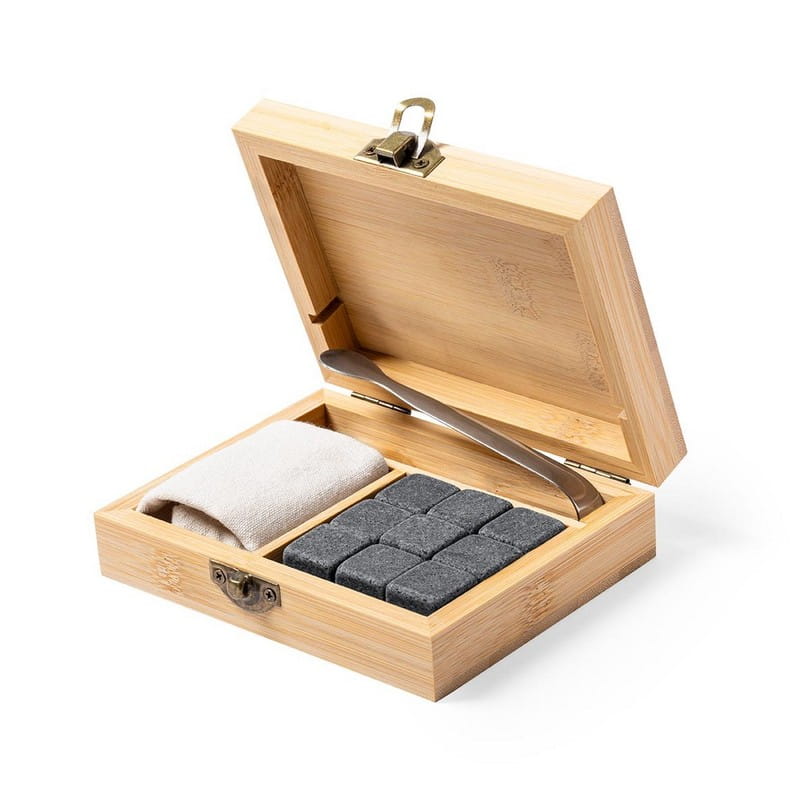 Zestaw kostek chłodzących do napojów - eko, kamień, bambus, stal nierdzewna, 13 x 4 x 14,5 cm, ciekawy gadżet reklamowy, znakowanie - laser, nadruk