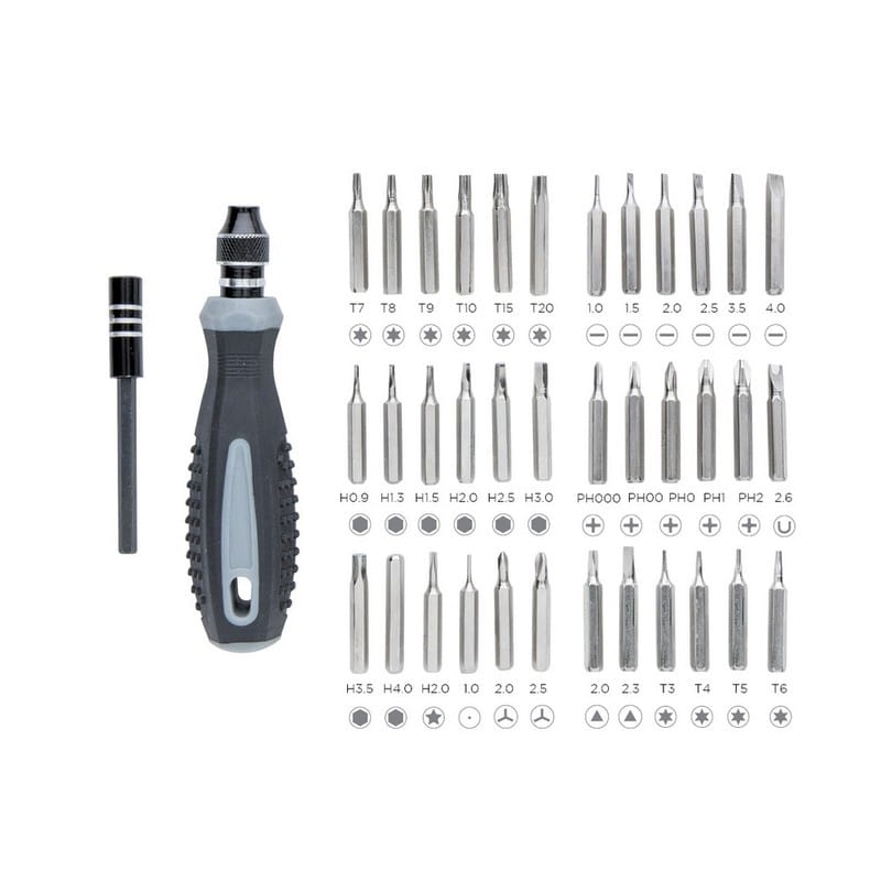 Zestaw narzędzi 38 elementów, 132 x 22 x 88 mm, stal węglowa, ABS, PP, ciekawy gadżet reklamowy, znakowanie - nadruk