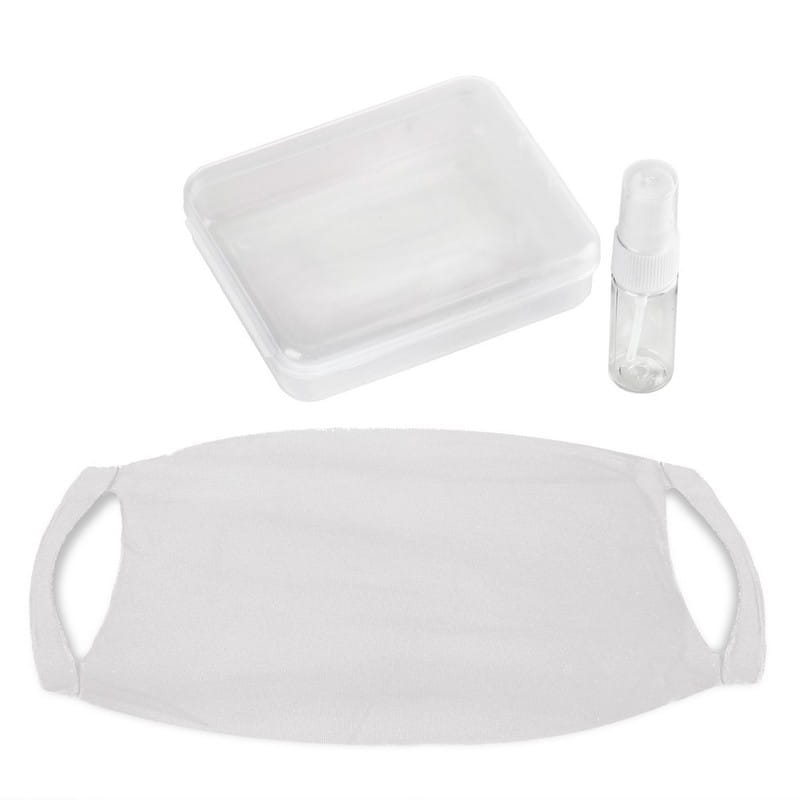 Zestaw ochronny w pudełku, 120 x 94 x 28 mm, butelka na płyn do dezynfekcji, maseczka z jonami srebra, ciekawy gadżet reklamowy, znakowanie - nadruk