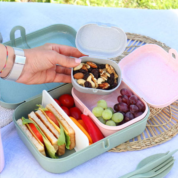Zestaw śniadaniowy KOZIOL - eko, tworzywo ORGANIC w 100% do recyklingu, 235 x 166 x 62, min. 20 szt., 3 pojemniki + zintegrowane sztućce, ciekawy gadżet reklamowy, znakowanie - nadruk do 90 x 60 mm