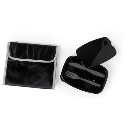Zestaw śniadaniowy, torba termoizolacyjna, poliester 600D, 26 x 22 x 18 cm, pudełko śniadaniowe 1000 ml, nóż, widelec