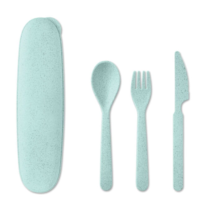 Zestaw sztućców - eko, 22 x 6 x 2 cm, po połowie słoma pszeniczna i PP, ciekawy gadżet reklamowy, znakowanie - nadruk, naklejka